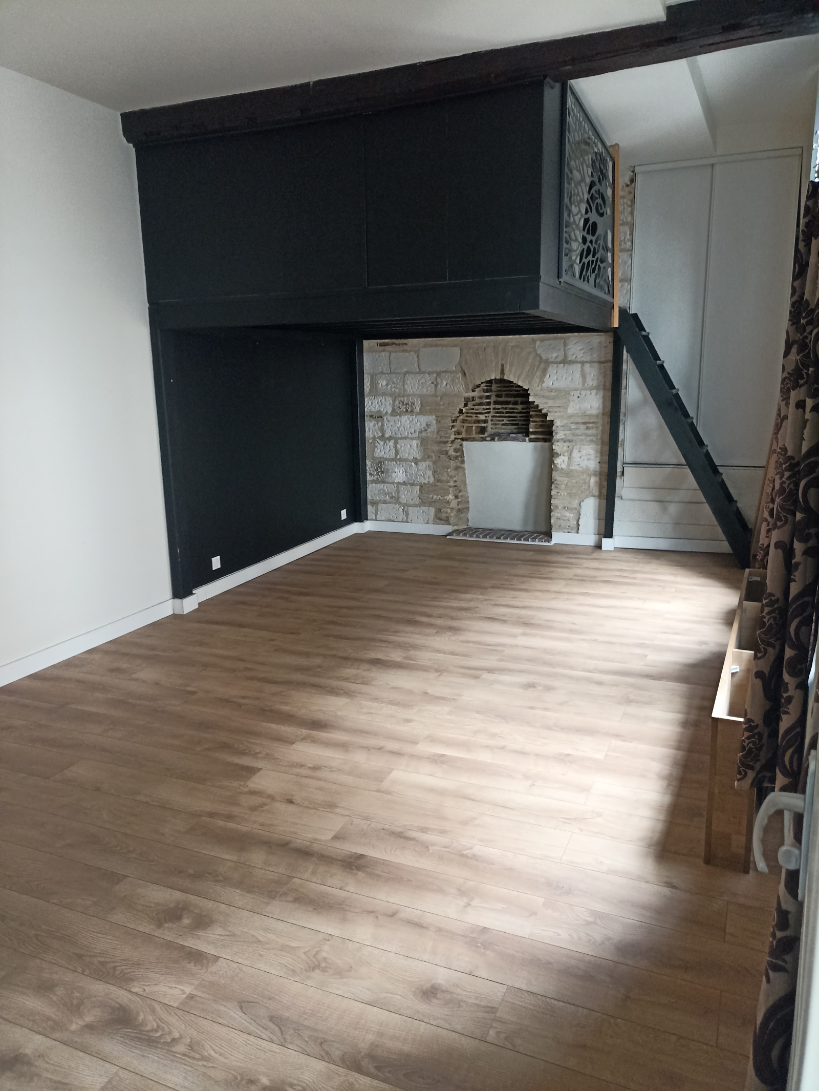 Il dispose d'une grande pièce de vie avec sa cuisine aménagée et équipée ouverte sur le séjour, d'un espace nuit avec sa mezzanine et d'une salle de douche avec WC.